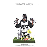 Mit ihrem Wald bringt uns K. Goldyn eine ganz neue Topografie. Die Naturfarben schillern jetzt als psychische Farben. Hier findet man ein Rot von Leidenschaft, von innerem Erlebnis und psychischer Intensität. Begleitet wird es von Schwarztönen, wie das dunkle schwarz ihrer Erde. Die Zweige und das Gestrüpp des Waldes sind jetzt so extrem reduziert und verfremdet, dass nur noch die Stacheln der Kakteen übrig bleiben. Die vielen Kakteen sind aber nicht abstoßend, sondern ziehen uns durch ihre Farben und Formen näher an Goldyns Landschaften heran. Wie das Gestrüpp den Wald undurchdringbar macht, so schützen die Kakteen die Protagonisten in ihrer Welt. Die Frauen und Männer erinnern an Ur-Götter, an prähistorische Symbole der Kreativität und Fruchtbarkeit. Die Frauen zeigen sich uns mit ihren üppigen aufeinander gereihten Brüsten, die dann durch die Vielzahl der männlichen Phalli balanciert werden. Es ist ein Tanz der Lust zum Leben. Am Ende ist Goldyns Wald also kein düsterer Ort, sondern eine ursprünglich, mythologische Welt der Kreativität und des Ursprungs.