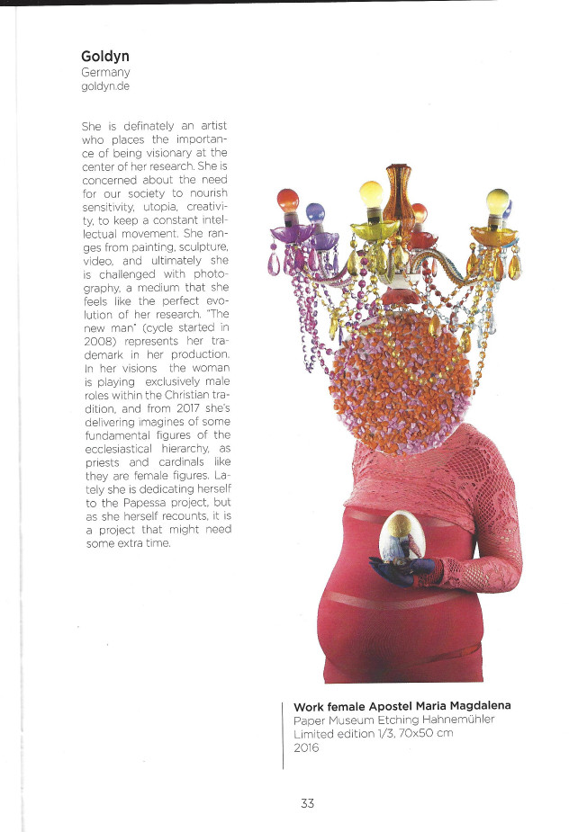 Goldyn führt uns anmutig in das Paralleluniversum, wo ihr kreativer Geist liegt, genau wie Charon es mit Dante tat, als er den Dichter auf die andere Seite des Acheron brachte. Sie lässt uns in den Traum gelangen, der heutzutage von den meisten wichtigen Kunstgalerien weltweit erfüllt wird.