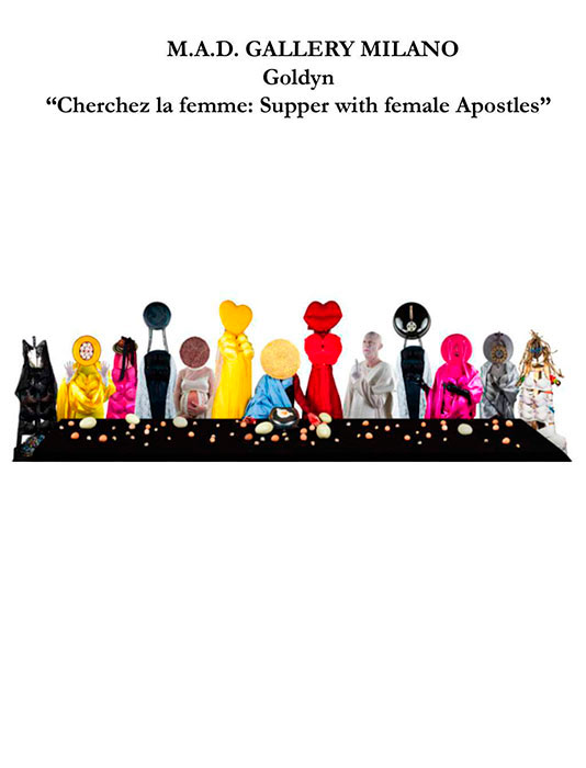 Goldyn verband mit „Cherchez la femme: Supper with Female Apostles“ Malerei und Skulptur mit Mode und Design, indem sie eine beeindruckende Darstellung aus einem akkuraten und tiefen Konzept realisierte.