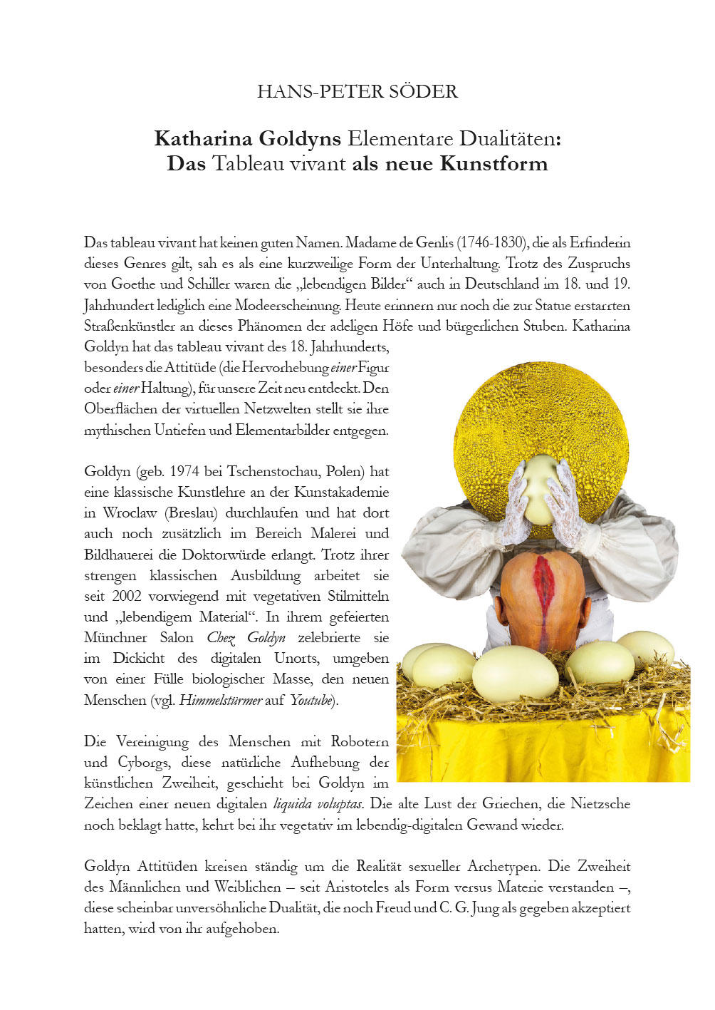Katharina Goldyns Elementare Dualitäten: Das Tableau vivant als neue Kunstform