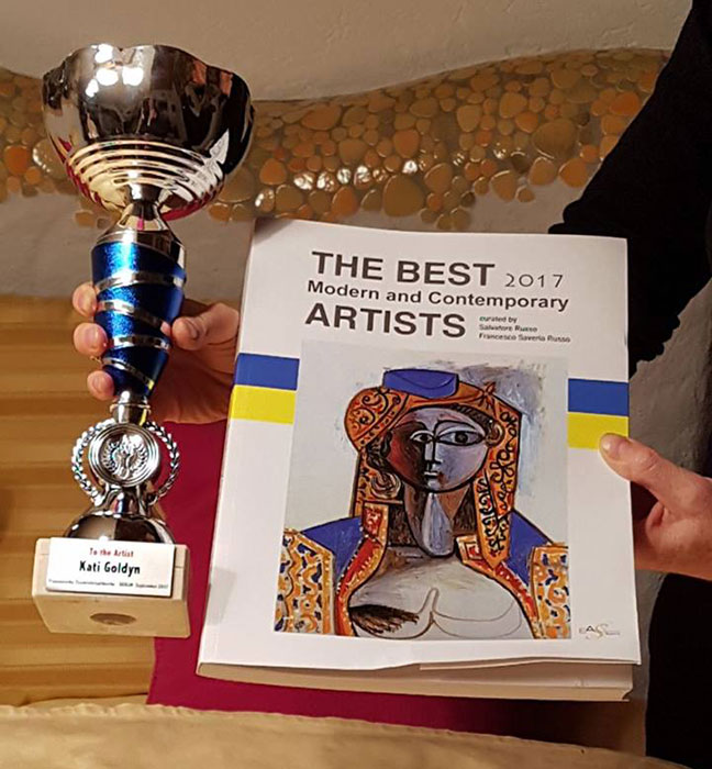 Ich freue mich immer über solches Schaffen wie von Frau Goldyn. Ihr Schaffen gehört zum Gebiet der spontanen Kunst des 20. Jahrhunderts, zu den Künstlern wie Pollock, Dubuffet, Niki de Saint-Phalle, der Gruppe COBRA und Art Brut. Frau Goldyn führt das Werk dieser Künstler fort und ist fast eine einsame Insel zwischen einer Menge Tendenzen der heutigen Kunst - eine „Gute Utopie“. In unserer Zeit der Dominanz der elektronischen Plastik oder der Massenfiguration nach Tuymans, gebührt der Malerin Goldyn deshalb besondere Bewunderung und echte Anerkennung.