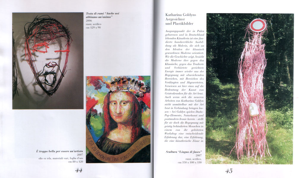 Start > Ausstellungen > 2007 - ”Art Italy”, Periodik Nr 28, Heinz Schutz, ”Katharina Goldyns-Astgesichter und Plastikbilder”, Verlag Adriano Parise, Verona, 2007 Jahre, Seite: 40-47